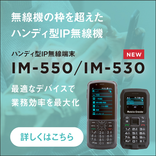 モバイルクリエイト株式会社の業務用IP無線端末/スマートフォン向けIP無線アプリ「iMESH」ブランドコンセプトや活用シーンをはじめ、製品についての詳細をや資料請求はこちらをご覧ください。